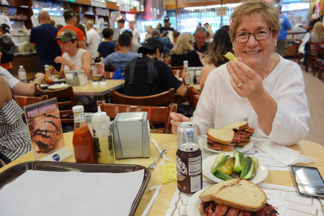 Judy and I enjoy another great New York experience -- pastrami sandwiches at Katz's Deli on Houston Street, Lower East Side. Best pastrami anywhere! (But the dill pickles at the old Carnegie Deli were tastier.)