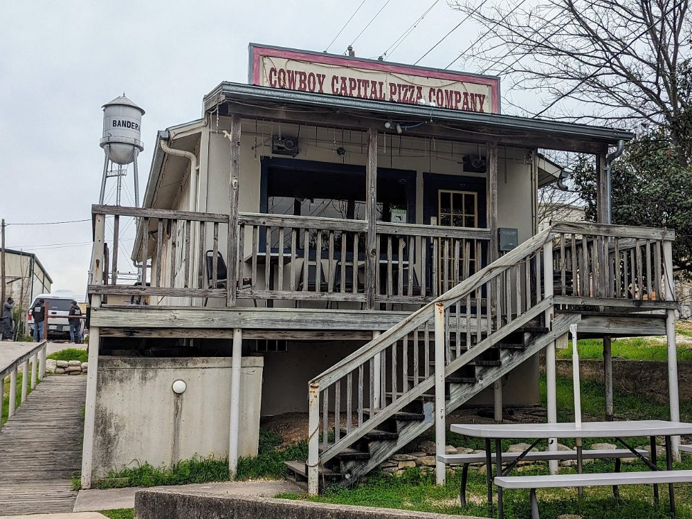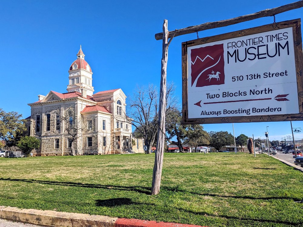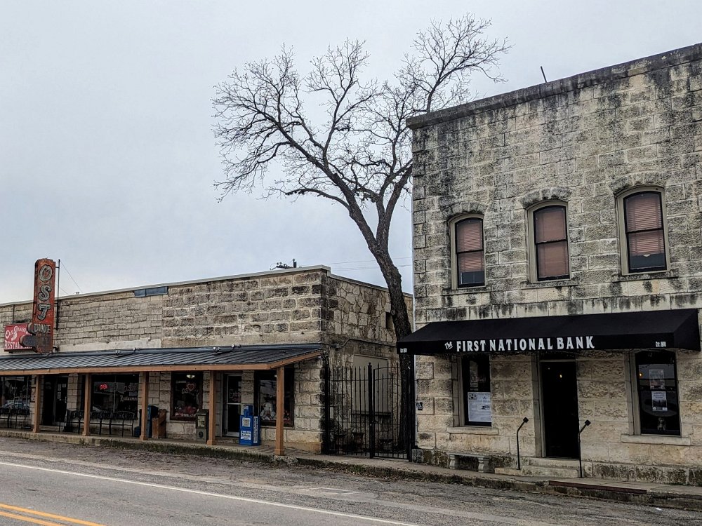 If unmaintained, those limestone blocks can get dingy. This is a portion of Bandera's main street, which actually is very busy. That establishment on the left…